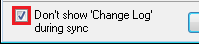 When you start a sync, you may prefer not to see the sync change log display sent in the future by clicking the Don’t show Change Log during sync check-box option in the lower left of the sync box.