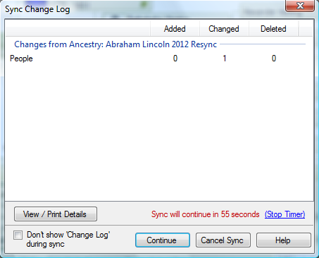 Final changes: The Sync Change Log screen will briefly summarize the changes detected by your sync. To see further details, click on the View/Print Details button left of this box.